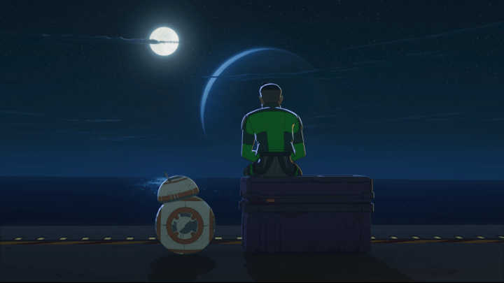 I also loved how much of Poe Dameron we got in this episode. I know he won’t be a main character in every episode, but we got to see quite a bit of Poe in the first half of this episode, and it was great. BB-8, too – and we even got a glimpse of Leia and heard C-3PO! It’s too early to tell about the new characters, but I’m especially intrigued by Yeager and want to learn more about him and see more of him. As for Kaz, I think he’s fine. He seems to be just a newer version of Ezra Bridger, but I’m sure as the show gets going we’ll see differences between the two – namely, that Kaz isn’t a Jedi.