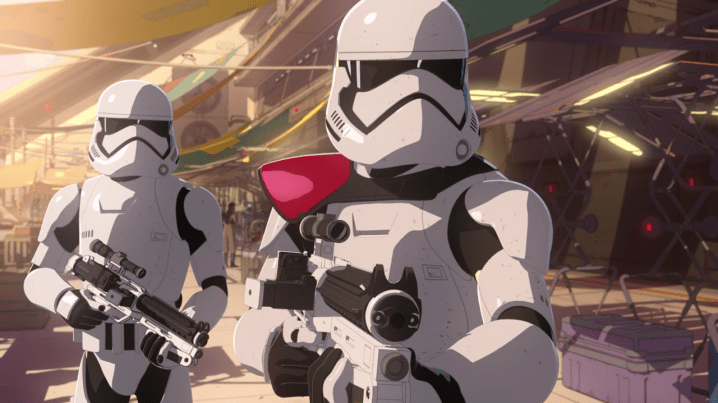 The intrigue surrounding Star Wars Resistance is really ramping up as the First Order’s presence on the Colossus becomes bigger and bigger. After the events of last week’s terrific episode, when the First Order betrayed the pirates and staged a rescue of Torra Doza to make themselves appear to be the heroes, the First Order now has troops on the ground on the station. And that, as you can imagine, makes life difficult.