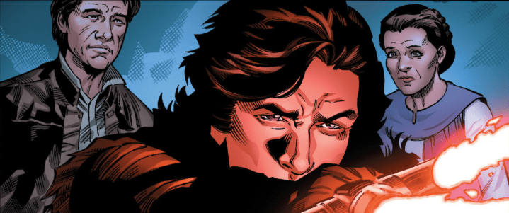 In this cave, Ben Solo faces what he fears – and sees his family. So this issue really gave us a better look at Ben Solo, particularly as it pertains to his relationships with others. So in this article, I want to explore a bit what we learned about Ben’s relationship with Snoke, with Luke, with Hand and Leia, and with himself.