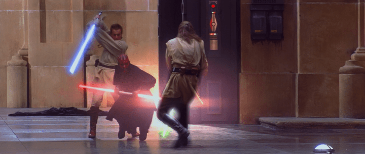 The fight is a duel of the fates because it’s a fight for the fate of Anakin Skywalker. Filoni explains that Qui-Gon sees the failure of the Jedi well before the others do (as Yoda realizes it in Attack of the Clones), and knows that Jedi aren’t actually opposed to love. He knows that taking Anakin away from his mother is hard, and so Anakin needs a father figure – Qui-Gon. So this fight is a fight over what will happen to this young boy, and in the end, Qui-Gon loses. And with it, Anakin loses his father figure.