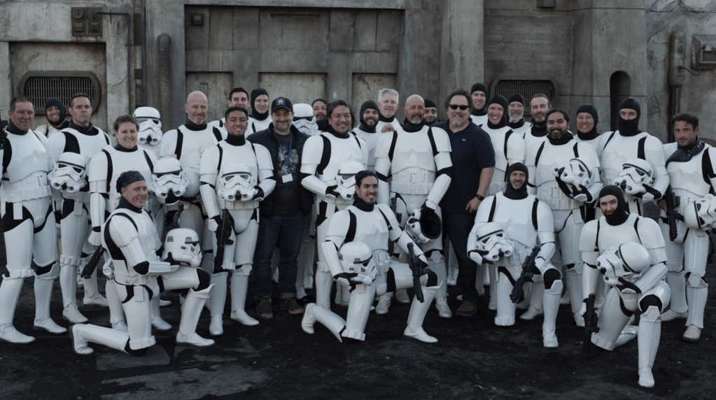 The connection that perhaps received the most attention in this episode was something we had previously heard about, but it was really cool getting to see video of it and hear people talk about it: members of the 501st actually played the stormtroopers in the eighth episode! The 501st is a massive group of Star Wars cosplayers who build their own armor and make appearances all over, often at the behest of Lucasfilm for events. Realizing that they needed more stormtroopers than they had costumes for, Filoni called some people from the 501st and asked them to come down, not telling them that it was for shooting The Mandalorian. So these 501st members arrived in full costume (the ones that they had made) and were stunned to discover that they were actually going to be appearing on-screen in Star Wars – which, as Filoni points out, means that their armor is now screen-used props! It was cool getting to see these stormtroopers interviewed, acting, and enjoying being on-set. Filoni mentioned that, though they were given direction, these people know how to act like stormtroopers, so they didn’t really need it. I think it’s really awesome how many of the stormtroopers you see in the eighth episode are actually just huge Star Wars fans who made their own armor and were called in (unknowingly) to film the first live-action Star Wars TV series ever – and that Filoni and Favreau thought to ask them.