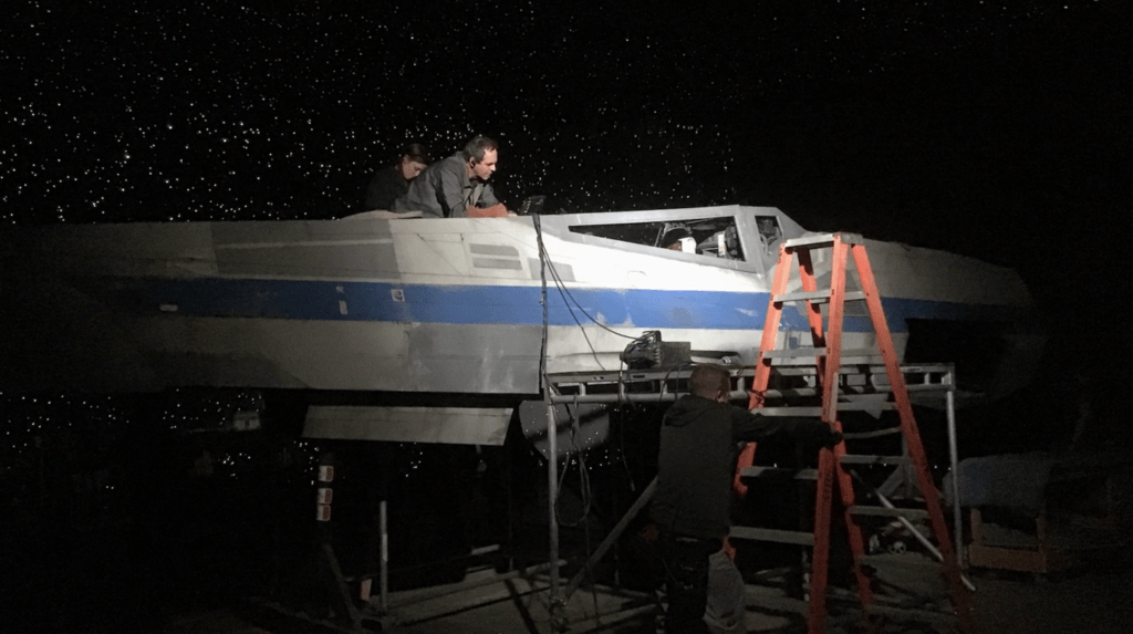 The final connection talked about in the episode is maybe my favorite, as there was a lot of talk between Favreau and Filoni about how it came about. In the sixth episode of The Mandalorian, three New Republic X-Wings show up, and their pilots are played by directors of the show: Dave Filoni (as Trapper Wolf), Rick Famuyiwa (as Jib Dodger), and Deborah Chow (as Sash Ketter). Filoni tells how he and the other directors were convinced to do it by Favreau, who wouldn’t let them out of it. Filoni jokingly talks about weighing how to get out of it, but then how actually going through with it helped him gain a deeper understanding and appreciation for all that actors go through to film a scene. It’s a great exchange, but there’s another easter egg revealed beyond just the three pilots: the X-Wing that was used is the very same X-Wing that is currently displayed at Galaxy’s Edge at Disney World in Orlando, Florida! They had the X-Wing brought to set, they modified it to be able to film in, and the three directors-turned-actors each got in the seat and filmed their scene. So if you go to Galaxy’s Edge in Florida, you can know that the X-Wing on display there is an actual screen-used prop that was the ship for three directors of The Mandalorian!