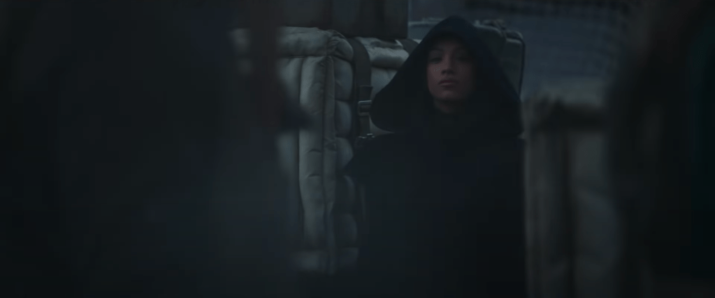 It is as we hear the Armorer mention the Jedi that we get a glimpse of this robed and hooded figure, staring from afar through the bustling crowds. It appears as if Mando and the Child see her, but then she just suddenly disappears. Clearly, we are meant to connect this with the line about the Jedi, and Mando’s quest as a whole. But who is she? Well, she is played by Sasha Banks, a WWE fighter. This confirms her casting.