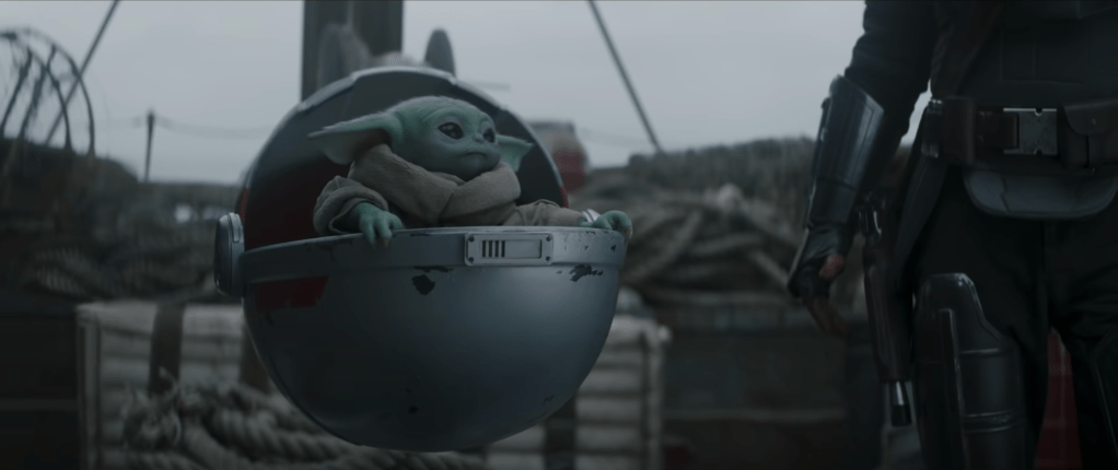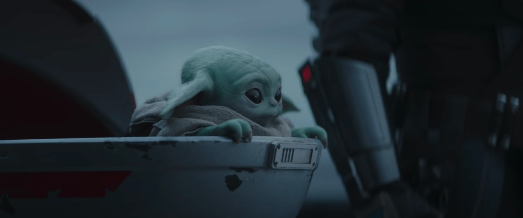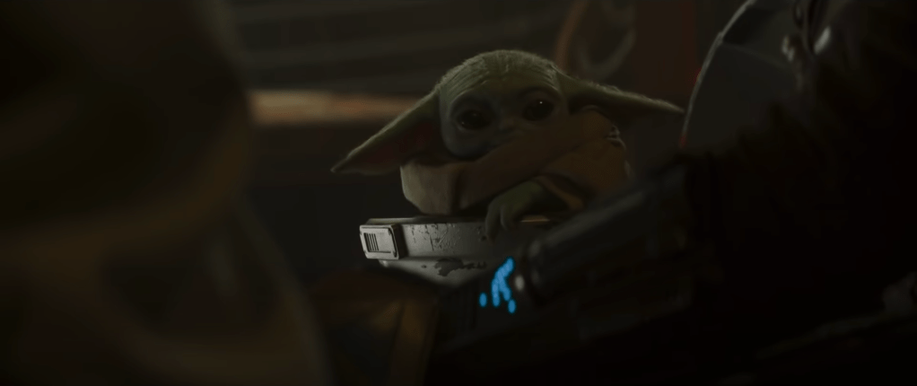 We then get my favorite shot from the trailer. As Mando is in trouble, the Child looks on. He sees Mando very subtly prep and arm his whistling birds, and upon seeing this, the Child quickly reaches out and presses the button on his floating carriage, closing the lid. It’s hilarious, and you need to see it to fully appreciate it: