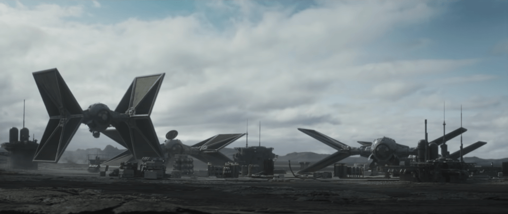 This also looks like it’s on Nevarro, so it appears the Empire is still present on the planet. We see some TIE Fighters taking off, and that quickly then launches us into a series of shots from the Imperial point of view…
