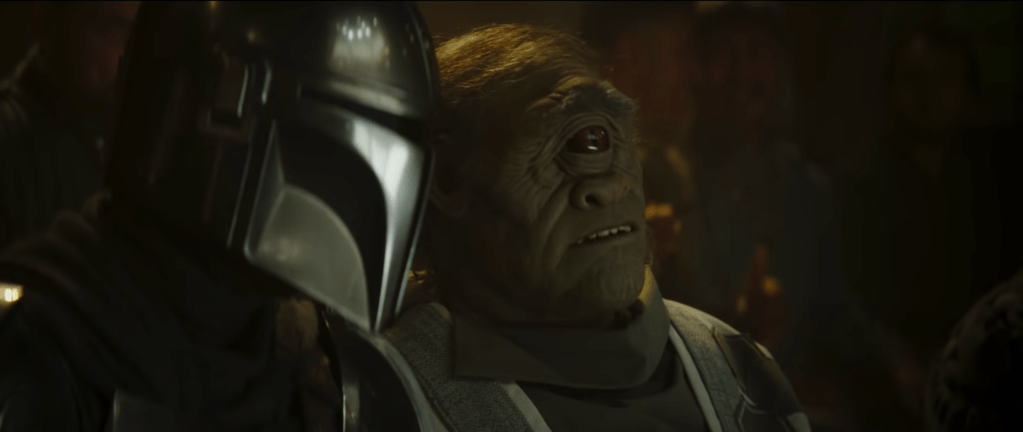 So yeah, I think this is a new character. The big question is what her motivations are – is she looking to help Djarin find the Jedi, or is she looking to take the Child? As I’ve seen some people point out on Reddit, remember that one of Dave Filoni’s ideas for The Clone Wars was that, given the relative rarity of Force-sensitive children, there would surely be people in the galaxy who impersonated Jedi to take them. This idea was fleshed out by Filoni, who gave the false Jedi the name Latrans, and the imposter Jedi attempted to take Ahsoka when she was a child, though ultimately it was unsuccessful. Though Filoni never put this in the show, it was mentioned in the Ahsoka novel. With Filoni’s very close involvement in creating this show, I wonder whether that could be something we re-visit. If people get word of Djarin’s search for the Jedi (especially if that’s someone like Moff Gideon), sending someone to impersonate a Jedi to try to take the child makes sense.