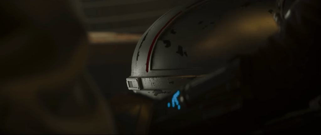The trailer opens above an unnamed planet, and the Razor Crest has clearly seen better days. One of the engines is sputtering, the ship looks like it’s kinda flying strange, and the hangar bay door is wide open and flapping around. So the ship has clearly taken some damage. What’s unclear is how this damage is sustained, but it’s probably a decent guess to say that it sustains damage in a firefight and has to land on one of these planets in view here. This shot (along with another one we’ll get to in a minute) helps to set the stage and remind us that things won’t exactly go smoothly for Din Djarin. People are still hunting the Child, so as long as Djarin has him, he’ll be hunted too. Starting the trailer with this damaged ship should remind us that trouble awaits.