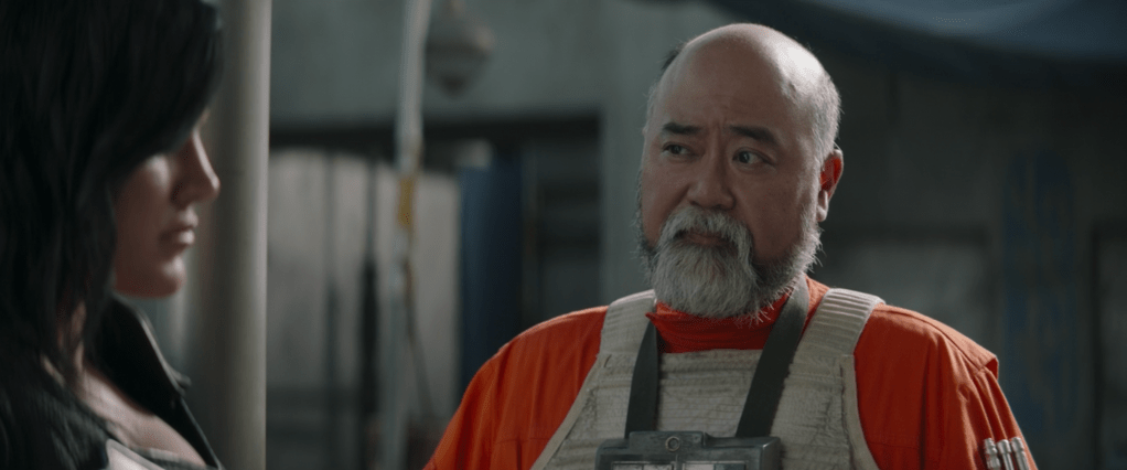 The two also discuss Cara Dune’s home of Alderaan. That had been mentioned in the season finale of season one, but it’s re-visited here and given more attention – and more emotion. Teva asks if she lost anybody, which seems like a dumb question to someone whose whole planet was blown up, but he was likely just trying to ask about the loved ones closest to her that she lost. She responds, though, that she lost everyone, and he expresses his condolences, giving her a Rebel medal (it’s unclear whether it’s his own or not) before leaving. It’s a touching moment that gives us a peek into Cara’s backstory, while also hinting at more possible New Republic involvement down the road.