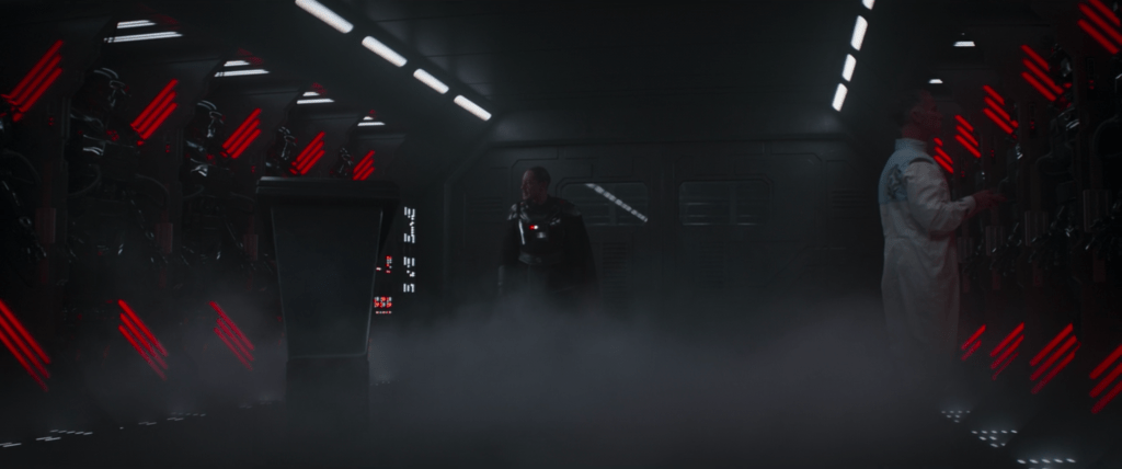 There are a couple of things about this very mysterious scene that stood out to me in particular. I’m not sure whether they are clues about what is to come or mere coincidences, but I want to point them out anyway. First, the subjects in the vat look somewhat similar to the Snoke creations seen in the vat in The Rise of Skywalker. That’s very interesting to me. Second, during this scene, the music that plays has a lot of similarities to Snoke’s theme from The Force Awakens, and then transitions into a subtle variation of Kylo Ren’s theme. Whether this means anything or not remains to be seen.