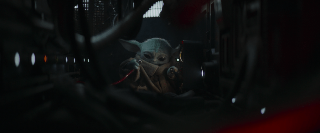 There’s a lot here to discuss! But let me just get this out of the way to start: the Child continues to be absolutely adorable. Every scene with him in it was great in this episode. The scene of him trying to fix the Razor Crest as Djarin told him what to do was quite funny – and I’m just glad he’s ok after electrocuting himself! Then we got a moment of him sitting with Djarin as they both ate (and Djarin lifted his helmet slightly to do so!), as they shared a father/son moment. The moment in the school where he wants the other kid’s macaroons and uses the Force to secretly take them was great. Then him treating the Razor Crest battle sequence like a roller coaster, putting his hands up as they flew, was great – only to be followed by him throwing up his food (and with true dad energy, Djarin used his own cape to clean it up). This episode had some truly great moments with the Child.