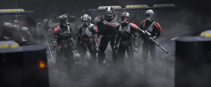 As mentioned already, the Bad Batch is surprised to learn that Omega knows who they are. And this leads into a sequence where Omega names them all, and the trailer shows us brief glimpses of them in action…