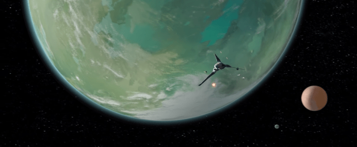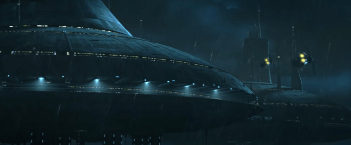 We see a shot of Kamino at night, with V-Wings flying by. I’ve got to say, I’m super excited to be heading back to Kamino! This will actually be our first look at the planet after the Clone Wars, so even though it’s immediately afterward, I still think it’s awesome to be going back.