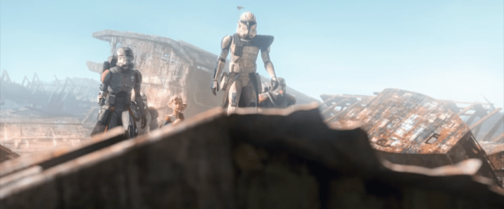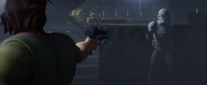 THAT’S CAPTAIN REX!!! Probably the biggest surprise of the trailer to me is Rex’s inclusion, and it’s also surprising that it’s not played as a pivotal moment in the trailer or anything – it’s just briefly shown in a few shots. But it’s notable because this very clearly happens post-Order 66, since Rex didn’t seem to have met the Bad Batch before The Clone Wars season seven, and more significantly, because Omega is with them. So in other words, we’ll actually get to see Rex following the events of the Siege of Mandalore! I wouldn’t say this is super surprising, since we probably could have guessed Rex’s eventual conclusion, but I didn’t see it coming this early or in this trailer. But I’m super pumped about it. I wonder what he’s up to at this time, but I think it would be really cool if we see him on the hunt for other clones – maybe those like him who didn’t carry through Order 66. We know that Gregor and Wolffe did not either and that they wind up “retiring” with Rex, so it would be cool to see Rex finding them. Or maybe he’ll search for Cody, wanting to find out what happened to him. Whatever it is, I can’t wait to see him again!