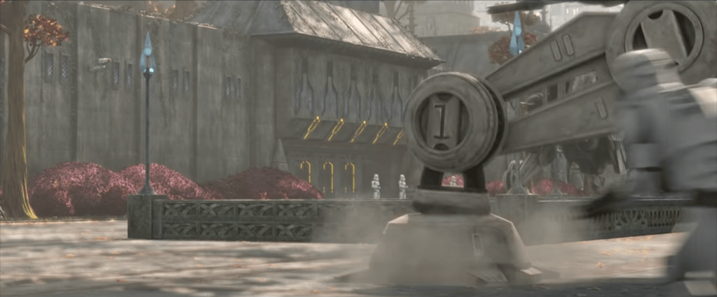 We saw a glimpse of this scene in the trailer before the season came out, and it’s the only one that we haven’t seen show up yet. I continue to think that this is Raxus, which would be pretty awesome. Raxus was the capital of the Confederacy of Independent Systems during the Clone Wars and therefore is a significant planet to see at this point in the timeline. The Tarkin novel mentions that Raxus was an area of interest for the Empire given the fact that it still had strong Separatist ties, which would explain why the Empire would send clones and tanks to march on the city here.