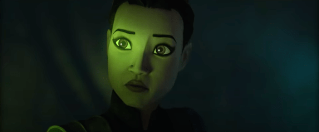 Omega! This is the only new shot of her that we get, so we’re really going into the second half of this season totally blind as to what’s going to happen. She’s in cuffs here and looks quite afraid, but she’s at a control panel pressing some buttons. I’m guessing that she’s trying to escape or call for help here, but it’s unclear whether she’s still in the custody of Cad Bane, the Kaminoans, or someone else… (more on that in just a minute). So there is very, very little about Omega seen here for the remaining eight episodes, and that means that there’s really nothing about the plot that’s revealed in this trailer. All we get is a few new shots that give us some glimpses but not a whole lot of information.