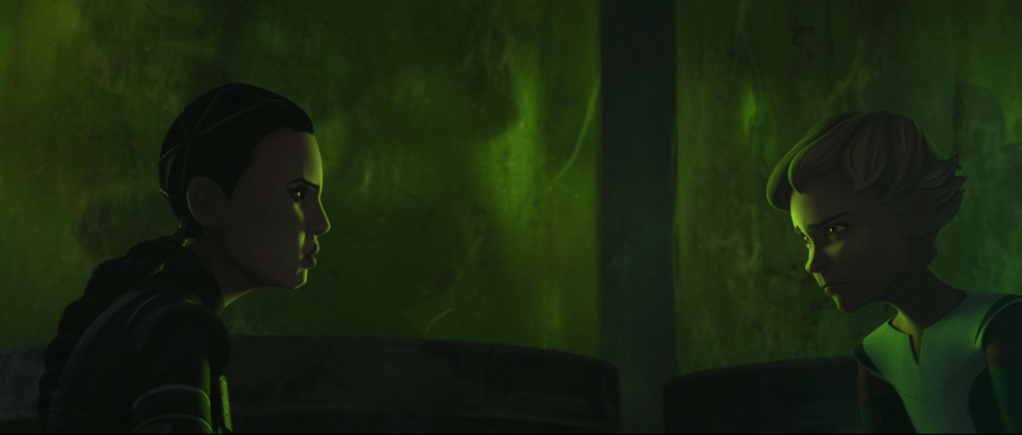 And since Hunter promised Omega wouldn’t ever go back to Kamino, I’m guessing Omega is going back to Kamino at some point this season. The big question is whether she’ll do so voluntarily, to try to save the others in doing what she thinks is best, or whether she’ll be taken again. It was surprising that she was rescued the very episode after she was taken, and I didn’t see that coming at all. But it makes me think even more that she’ll be taken again and wind up on Kamino before the end of the season.