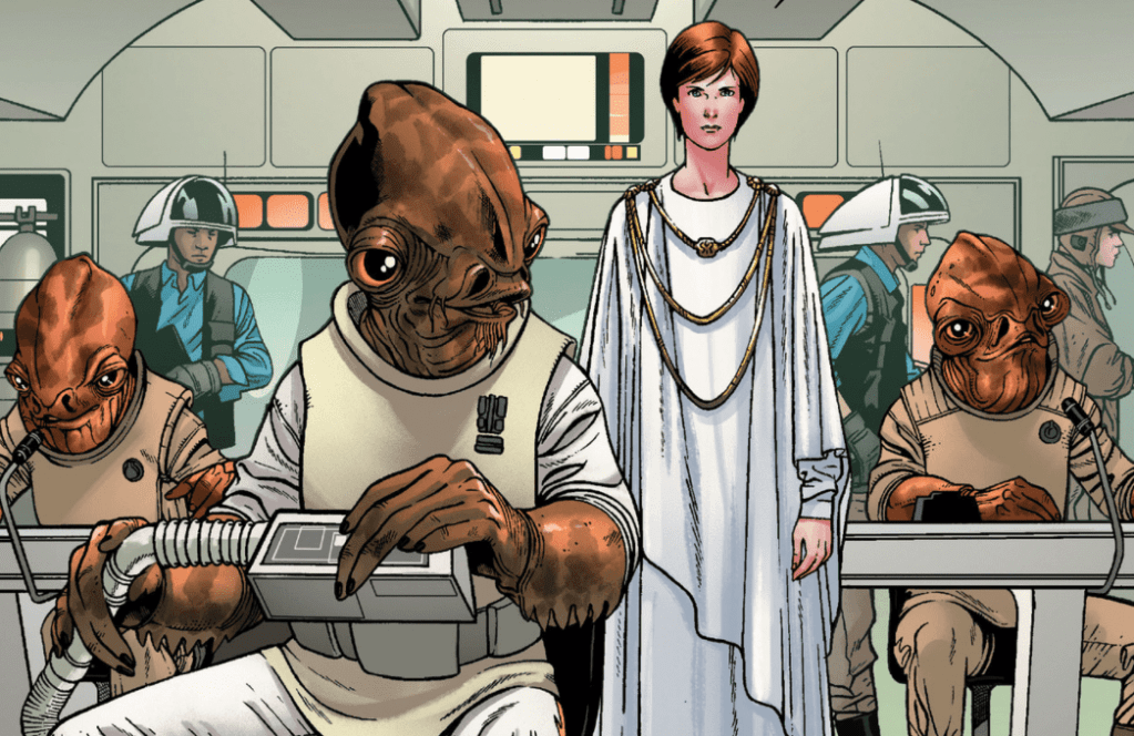 And so this issue really takes us on a side mission, one that shows the Rebels fighting to save others. It’s great to see Luke flying alongside Wedge and these other pilots, and it’s certainly a big deal that this leads to them reuniting with Mon Mothma and Admiral Ackbar. That’s a hugely significant development for the scattered Alliance in the wake of the defeat at Hoth.