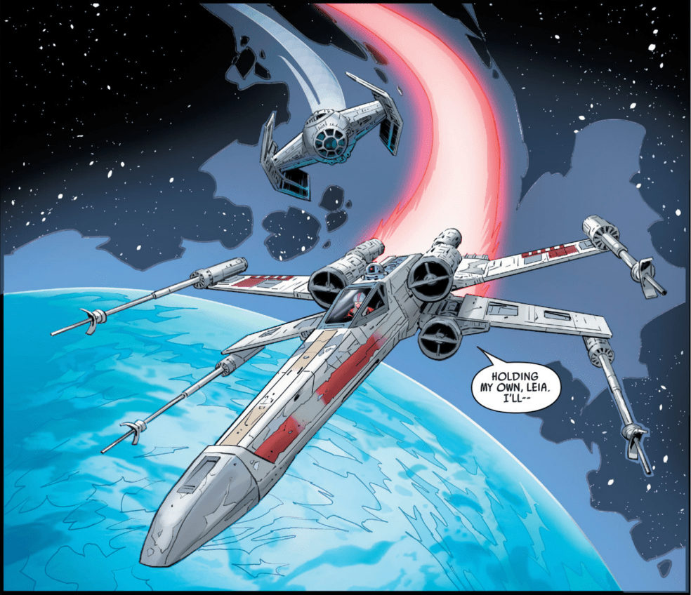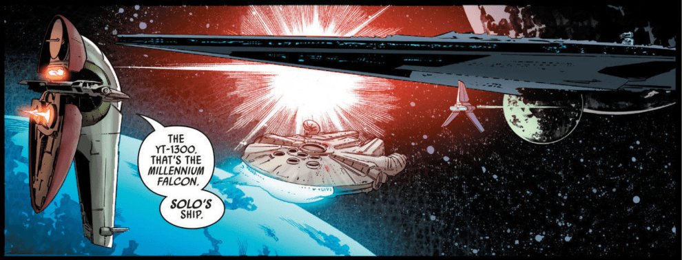 I also appreciated how this gave a much different impression on Luke’s actions at the end of the previous Star Wars comic, as he peeled off and didn’t come fight Vader. This wasn’t him giving up altogether on Han Solo, however, as he tries to lure Vader away. It’s interesting to see the Luke vs. Vader dynamic here, as this is in-between their duels seen in The Empire Strikes Back and Return of the Jedi. Vader wants Luke – and now wants to kill him – while Luke knows he’s not ready to face him again yet. However Luke does realize Vader’s obsession with him and uses it to the Rebels’ advantage. Luke takes a risk, but it’s a calculated one: he knows that Han Solo is Vader’s bargaining chip, so Luke figures Vader won’t kill Han if he has a shot at getting Luke. That proves correct, and so instead of a rematch between Luke and Vader with a lightsaber, we get a rematch of them in their ships.