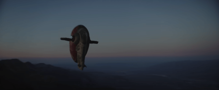 And of course we’re not getting Boba Fett without the Slave 1, and we get a brief shot of it flying across the Tatooine landscape.