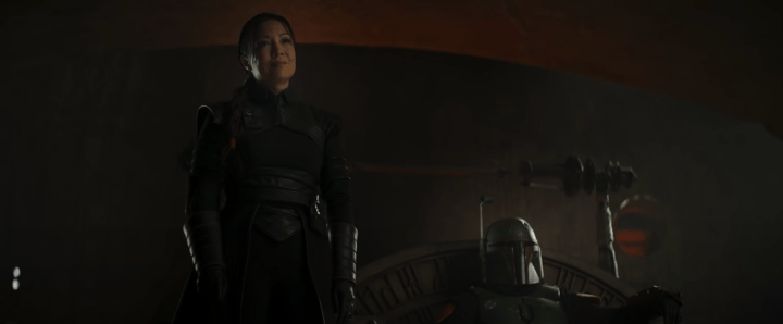 Fennec Shand says, to the same captains seen at the dinner earlier, that, “If you had spoken such insolence to Jabba, he’d have fed you to his menagerie.” This evokes what looks like fear from them, which makes sense, given that Jabba’s captains would have known how he fed people to his pet Rancor. This takes place with Fett sitting on his throne rather than at the table, so this probably isn’t directly connected to their challenge earlier, but it’s meant to look that way in the trailer. And after Fennec says this, Fett says, “Please. Speak freely.” Again, this is supposed to indicate to us that Boba is doing things differently than Jabba, and he’s willing to let these people voice their concerns and their challenges. However I doubt he’ll let this go on unhindered without end, so we’ll have to see how all of this plays out.