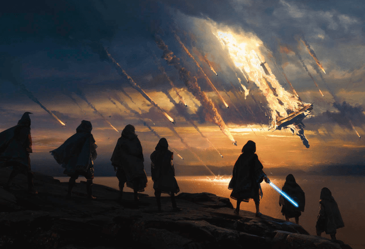 This isn’t the first time that we’ve gotten it confirmed that the Starlight Beacon will be destroyed, but this is easily the most poignant depiction of it. We see a number of Jedi standing by watching the prized station, a beacon of the Republic’s expansions and dreams under Chancellor Lina Soh, crashing and burning. It’s a stunning and startling image, and it’s gorgeous to look at.