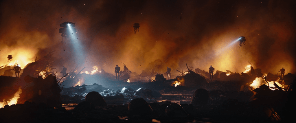 2. Through these explanations by the Armorer, we get to see Mandalore for the first time in live-action – on its worst day. We actually get to see the Night of a Thousand Tears, as Imperial bombers lay waste to the planet, including destroying the domed capital of Sundari. In the aftermath, K2 droids and probe droids kill any survivors. Mandalore has been destroyed. To actually get to see this play out on screen was both amazing and haunting, as we’ve long heard about it and now get to visualize it. Moff Gideon’s atrocities are now clearer (and speaking of Gideon, he’s in a New Republic prison somewhere being interrogated). And there’s even a reference to its destruction again when Djarin mentions that the mines of Mandalore have all been destroyed.