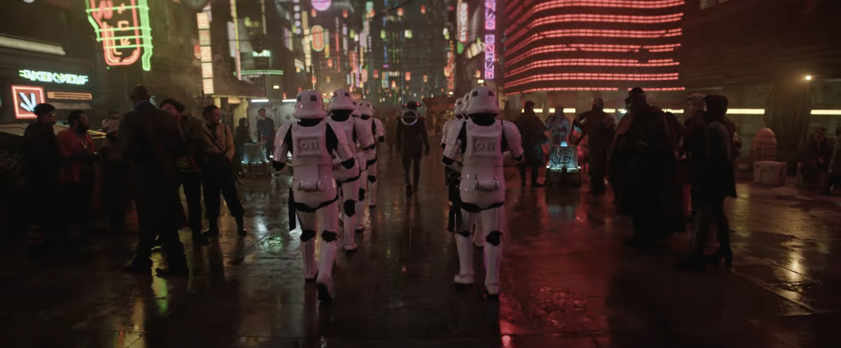 The trailer opens with a shot of a ship entering the atmosphere to a city at night, and this is almost certainly Daiyu. It’s followed immediately by a shot of the Fifth Brother leading a squad of stormtroopers through the streets of the planet, and we know that this is a brand new world that Obi-Wan goes to – one that features heavily in the trailer. One of the big questions is what gets him off-world (although if some rumors are to be believed we do know why – but it’s a potentially massive spoiler), but I like that we’ll be getting off of Tatooine in this series.