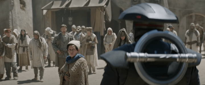 We see two new characters briefly introduced here. The first is Kumai Nanjiani’s character, though we don’t know who he is playing. It almost looks like he’s wearing Jedi robes, but it’s too hard to tell for sure. The second is a little droid, which will probably be a companion for one of the characters in the series, in typical Star Wars style.