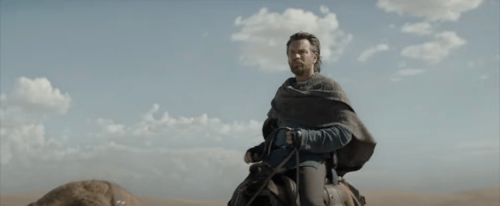 Kenobi isn’t gone… but he’s in exile. In a lone image of him riding his eopie across the desert sands, we understand that he’s all alone and in hiding.