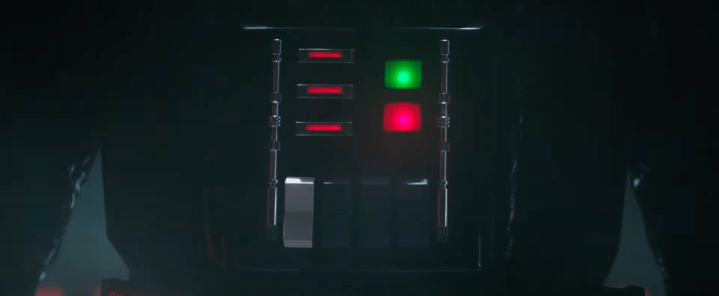 IT’S HIM. We only get a few brief glimpses, but that’s enough. We see Vader being put together: an arm is attached, and then his chest plate is fastened in, after which we hear his iconic breathing. This is surely happening in Vader’s Castle on Mustafar, which means we’ll get to see that again, which is awesome – and that’s just next door to Nur, which houses the Fortress Inquisitorious. These shots of Vader being put together are really well done, and it seems to make it almost certain that we’ll see Hayden Christensen in Vader’s suit, without his helmet. I’m all for it.