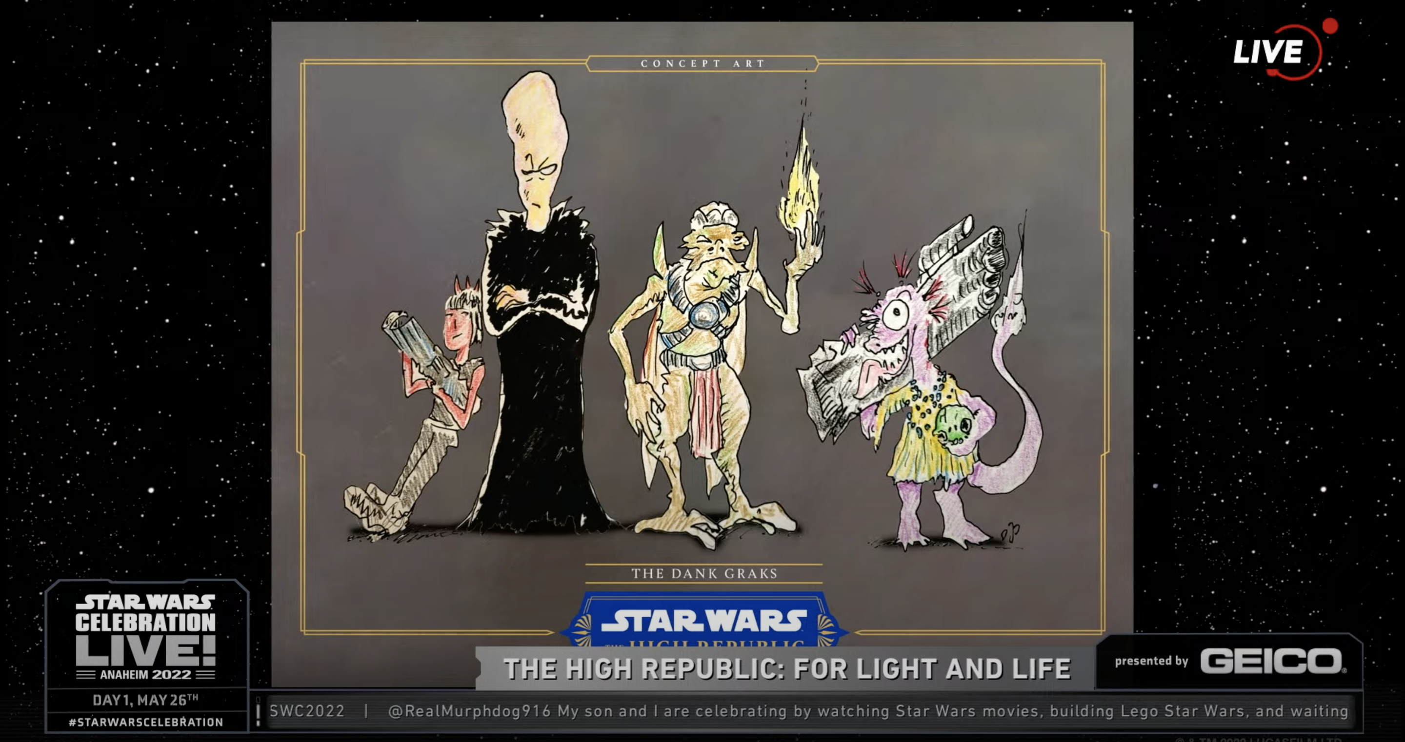 That’s pretty significant, even without having any big reveals. He mentioned video games – plural – which is interesting, since we only know of one game currently (Eclipse), and it’s possible that’s all he’s referring to, but perhaps more are currently in the works! And then he mentioned The Acolyte, which wasn’t a part at all of the Lucasfilm Studio Showcase earlier in the day but will be coming at some point down the road. It’s a live-action series that is set 100 years before The Phantom Menace and sounds like it will explore how the Sith could lurk underground for so long. And then most interesting of all, Waugh said there’s more coming that he can’t talk about yet. Might that involve other films or shows (maybe even the mysterious Tales of the Jedi, which will be revealed on Saturday)? Whatever it is, this is the strongest evidence yet that the High Republic is going to be much larger than just a publishing project (not that there’s anything wrong with that!), which is really awesome!