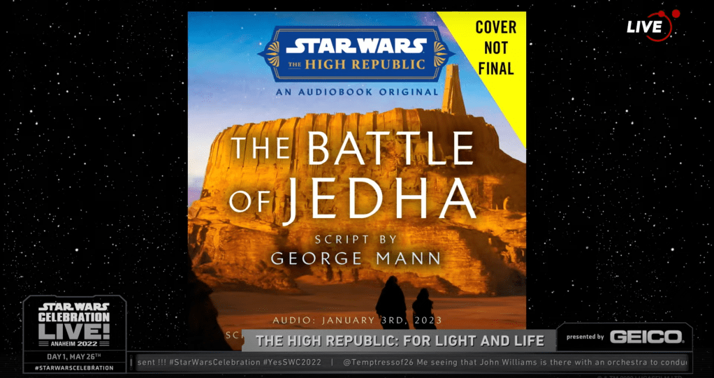 If you’re like me, one of those titles stood out from among the rest in terms of catching your attention: there’s an audio original coming called The Battle of Jedha! The planet first appeared in Rogue One as a world with a special connection to the Force and a place with a rich religious history for the Jedi and others, so it makes sense that it will be showing up centuries earlier in these stories. And it sounds like Jedha might have a significant role to play in phase two as well, as not only is this audiobook coming but so too will The High Republic comic feature Jedha, as Cavan Scott mentioned that the two Jedi seen on the cover are stationed on the planet. I’m really excited to see Jedha show up again!