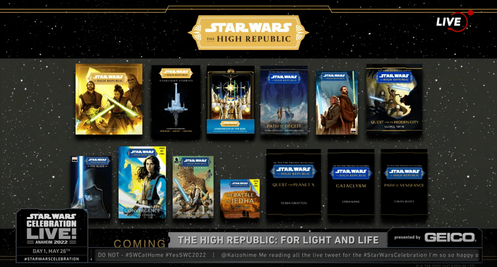Others: Starlight Stories (a collection of the High Republic short stories by the various authors) and Chronicles of the Jedi: An Illustrated Guide to the Galaxy’s Golden Age (Cole Horton)