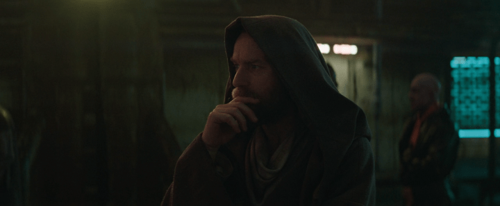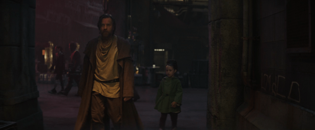 Obi-Wan Kenobi arrives on Daiyu, tracking Leia Organa. The planet is crawling with the scum and villainy of the galaxy, including a young woman who attempts to sell him some spice. Kenobi also sees an old homeless clone trooper, who looks to be from the 501st, begging for money. A young boy offers to take Obi-Wan to a Jedi who could help him and leads to Haja Estree, who is using a ‘Jedi mind trick’ to help get some people off-world. Obi-Wan sees right through his tricks and confronts him later, demanding he give him information. The information proves accurate, and Obi-Wan makes it to Leia’s cell… where her kidnappers accost him, saying that Reva’s plan worked.