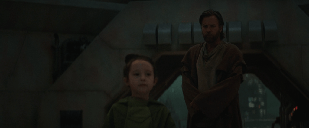 The heart of this episode is the dynamic between Obi-Wan and Leia, and let me tell you, that is the biggest surprise and the biggest delight of the first two episodes for me. Their chemistry and relationship is off the charts good, and Ewan McGregor and Vivian Lyra Blair are both absolutely fantastic in their respective roles. I know re-casting characters doesn’t always work well, and doing it in a different time period helps for sure, but the two best performances in this whole series so far are from two iconic characters who were re-cast from their original actors. Just saying. But I absolutely love Leia here, and Blair pulls off the seemingly impossible: capturing the feisty, rebellious spirit of Carrie Fisher while staying true to the fact that she’s a ten year old. She’s not fully the Leia we know yet, as she’s learning and growing into it, but it’s immediately clear that this is indeed Leia Organa. She’s perceptive, sassy, bold, rebellious, defiant, compassionate, and kind. She’s distrusting of Kenobi (and who wouldn’t be after just being kidnapped by three strange men?), and he’s not willing to tell her enough to get her to trust him.