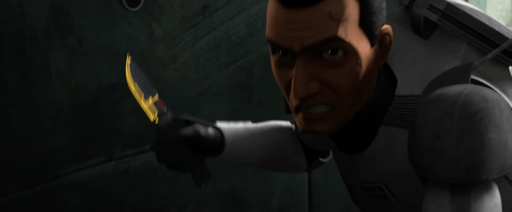 But there was an extended version of this trailer released exclusively for those in attendance at the panel, and it explicitly confirmed Commander Cody’s return, with Crosshair talking with him and Cody expressing doubt about whether the Empire was doing the right thing. Furthermore, later in the day at Celebration Dee Bradley Baker gave an interview in which he celebrated the return of Cody after all these years. So yes, it’s official: Cody is back!