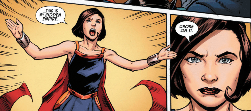 Qi’ra tells Cadeliah about her past and how she has learned to trust no one, and that is the key to leading Crimson Dawn. She then speaks to the gathered Crimson Dawn forces and tells them that the Empire is on to them, but she planned for this. She reveals that she just gave the order to all of their operatives spread across the galaxy – including in the Empire and the Rebellion – that the time has come to spread chaos. And while the Empire tries to deal with that Chaos, Crimson Dawn will strike to end them. “This is my hidden empire,” Qi’ra says. “Choke on it.”
