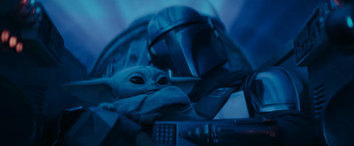The trailer ends with Grogu riding his trolley alone through a cave, only to be met by a thug who jumps in front of the entrance. Cut to the outside of the cave and the thug goes flying, Force pushed by Grogu out of the way. It’s a great moment to end the trailer with, because it hints at Grogu’s growing powers. And it hints at the question Pedro Pascal teased last year about Djarin’s growing relationship with Grogu: “who will be protecting who?”