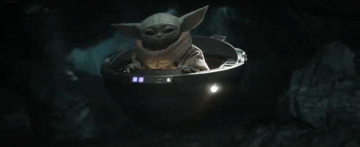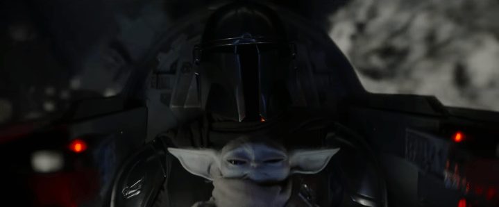 Grogu again, being adorable. He’s fascinated by fireworks, and then in a different shot he flips the switch for the turbo thrusters on the ship, taking them for a ride.