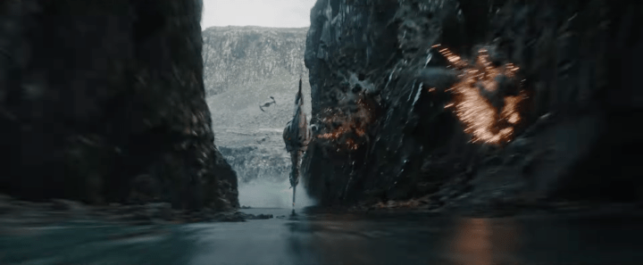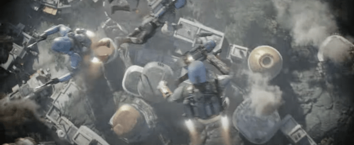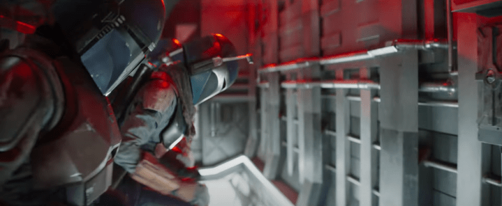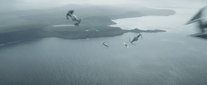 There’s a dogfight above a water planet between TIEs and a gauntlet fighter, and it looks amazing. It seems that Djarin might arrive to fight as well, but that’s a little less clear. Either way, to see the gauntlet fighter (perhaps piloted by Bo-Katan?) in action like this, against Imperial forces, is a dream come true. And it looks great.