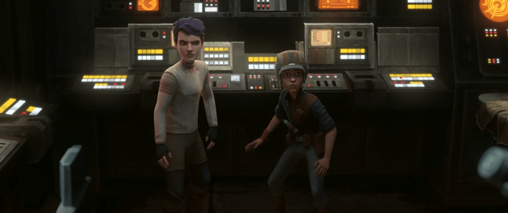 I really enjoyed this story, as it continues showing what’s happened to parts of the galaxy in the aftermath of the war – in this case, child worker exploitation and abuse, and the destructive effects of capitalism. While watching, I wondered out loud, “Why is the Star Wars galaxy so full of con artists, grifters, and thieves?!” and my partner said, “It’s the same in real life, not much difference!” Sad statement on our society! It’s heartening to see how the Batch continues doing what they think is right – that they stick to their values and continue to help people – and I was reminded of Nemik’s manifesto, how he says there are moments of insurrection happening all the time across the galaxy, people standing up against oppression (whether it be the Empire or a thug like Mokko). Anyway, I enjoyed the no-nonsense grumpiness on display, in their treatment of Benni, whom I think will show up again. Benni reminded me of the introduction to Ezra in SW Rebels – a self-serving thief with the same cocky attitude. At this point, the Batch is starting to rack up a few people who owe them a favour – Roland Durand, Cid, and now Benni – and it would be just like in Rebels if these characters were brought back at a later date to help the Batch when they are in trouble.