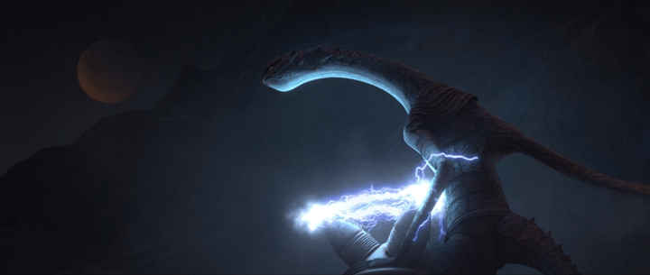 Meanwhile, aboard their ship the Bad Batch speaks with Cid over hologram, furious with her refusal to help them escape. She offers them another job, with a 50/50 split, after receiving word of an abandoned transport. They begrudgingly accept, with Tech suggesting taking one last mission could be a way of leaving Cid without turning her against them and making an enemy. So they follow Cid’s coordinates to an inhabited planet where the ship crash-landed, and they investigate. They stumble upon the creature, a young Zillo Beast, and they have to try to flee for their lives. In an effort to save themselves, the team lets the beast escape into the wild.
