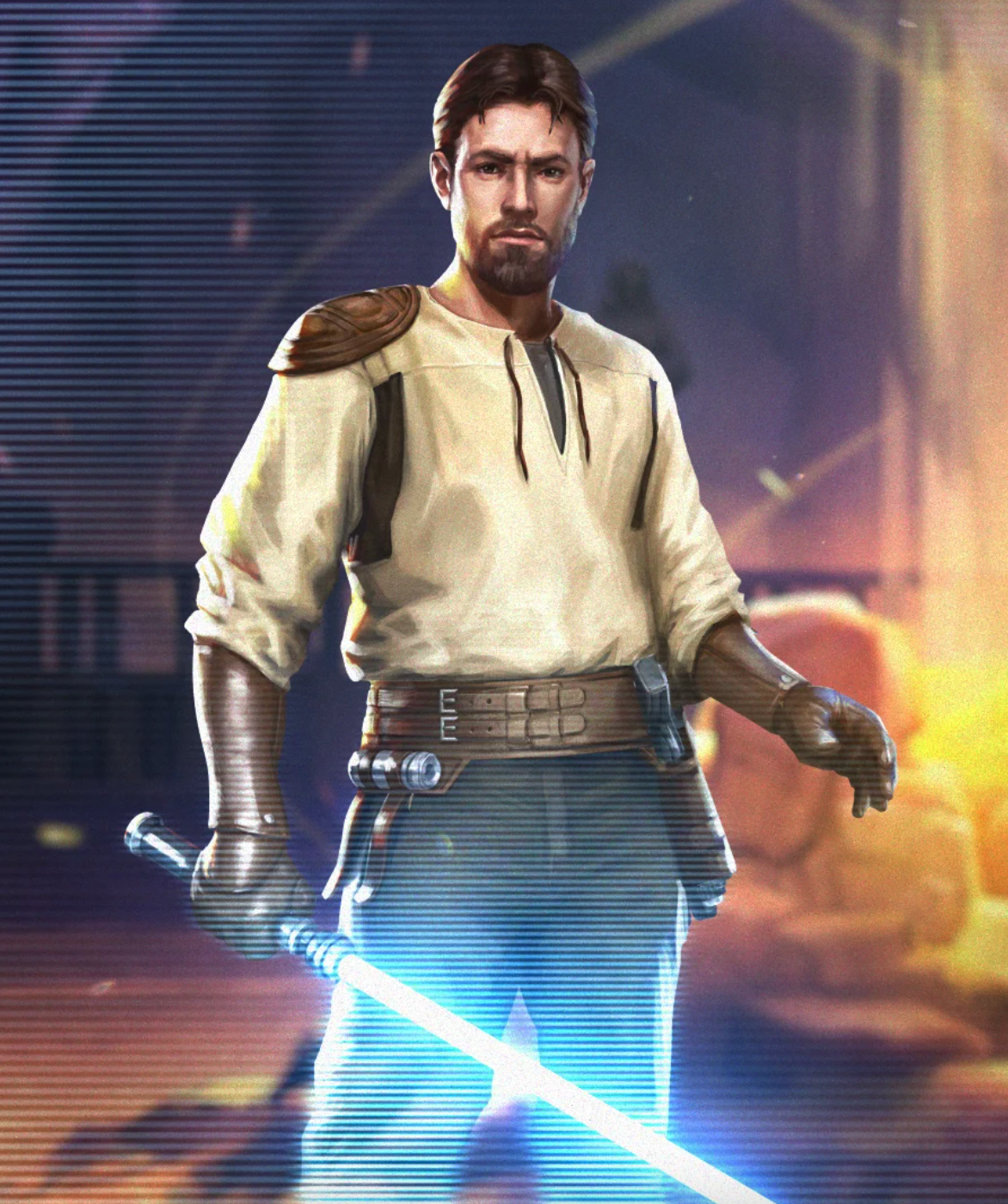 Kay Vess boards her ship to find a man named Jaylen, sitting in the cockpit claiming to offer her a way out. But when looking at Jaylen, it’s undeniable that he bears an uncanny resemblance to Katarn. Consider, for example, this comparison to the character model from Katarn’s appearance in the mobile game Galaxy of Heroes recently: