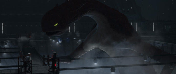 In the aftermath of the attack, Tarkin arrives on Weyland to survey the damage (and in doing so, we see the first chronological on-screen appearance of an Imperial Star Destroyer). Upon discovering that Hemlock is dead and his research lost (which unbeknownst to all involved set the Emperor’s plans of eternal life back decades), Tarkin orders the facility to be shuttered and the funds directed to Project Stardust (aka the Death Star). The fact that the facility is just “shuttered” and not destroyed is very interesting, and it makes me wonder if we might see it again. After all, Tantiss was a key base for Grand Admiral Thrawn’s efforts to rebuild the Empire in Legends, and the facility was used for cloning. Might we see it again in the storyline surrounding Thrawn in live-action? I’m not exactly counting on it, but wouldn’t be shocked. Regardless, this is classic Tarkin, always looking for ways to exploit another’s failures for his own purposes.