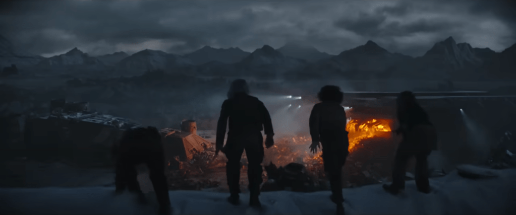 At one point in the trailer, we see glimpses of a snowy planet and an apparently luxurious building. Real briefly, we see a couple of shots that show us X-Wings flying by. At this point in the timeline, the New Republic is in power, so these are likely New Republic X-Wings. I think the most likely explanation is that the planet is simply under New Republic control and therefore there are routine patrols, but it’s possible that there’s something more. After all, though this series seems like it’s being marketed as distinct from other Star Wars stories, we know it will have at least some loose connections with The Mandalorian storyline. The crew behind The Mandalorian are executive producing this series (Jon Favreau, Dave Filoni, Kathleen Kennedy, and Colin Wilson have been executive producers on every Mando-verse project), and that means I wouldn’t at all be surprised to see some connective tissue. Like, maybe, Carson Teva flying one of the X-Wings or something?
