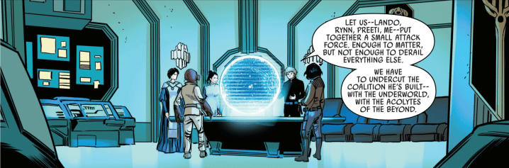 I love that we’re seeing Luke Skywalker actually very involved in the war effort even after the Battle of Endor, and that he’s leading a space battle alongside Lando in attacking an Imperial threat – all based on his plan in speaking to New Republic leadership. We know that during this time Luke is exploring the history of the Jedi and collecting Jedi artifacts, but he’s also still aiding the rebel cause that he’d been loyal to for several years previously. I’m thrilled by this, and by the implication that he’ll have a role at Jakku too, and hope that we continue to fill in the gaps more of Luke’s involvement during this final year of the Galactic Civil War.