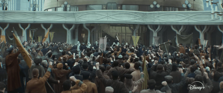 We have long suspected that one of the arcs in the second and final season of Andor will show the Ghorman Massacre, and that seems all but confirmed now. In the epic new special look that was released recently, the closed captions include a description reading, “protestors singing in Ghor”, while highlighting once more the riots and fighting breaking out.